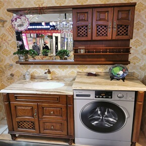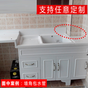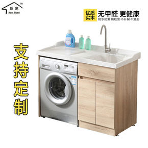 阳台实木洗衣机柜组合滚筒洗衣柜切角石英石盆洗衣池带...
