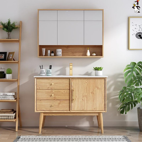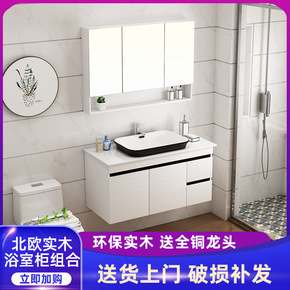 北欧落地浴室柜组合轻奢台上盆实木智能洗脸盆大理石洗...