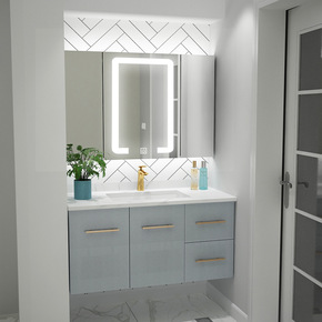 现代简约北欧风卫浴柜 挂墙式镜柜洗手台组合 智能除...