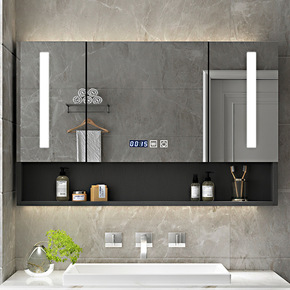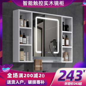 浴室镜柜欧式实木智能镜柜单独带置物架带灯储物挂墙式...