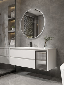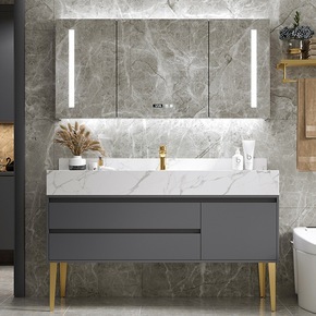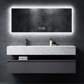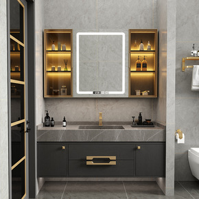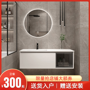 轻奢岩石一体浴室柜组合智能现代简约挂墙式池洗脸镜卫...