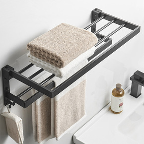 太空铝方管浴巾架浴室壁挂式毛巾架洗手间收纳免打孔卫...