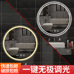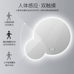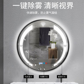 智能浴室镜触摸屏带灯防雾圆形壁挂洗脸台卫生间LED...