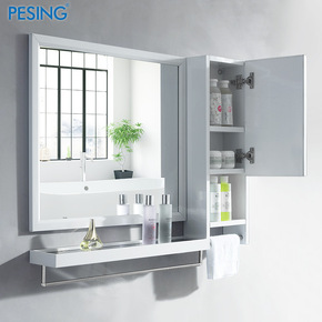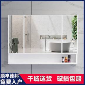白色不锈钢浴室镜子 卫生间壁挂洗漱镜柜卫浴镜子带置...