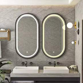 浴室镜子免钉壁挂粘贴无框卫浴镜防水洗手间卫生间椭圆...