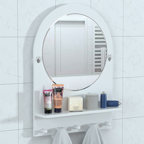 挂墙镜子塑料化妆浴室镜带置物架镜子家用镜子洗手间梳...