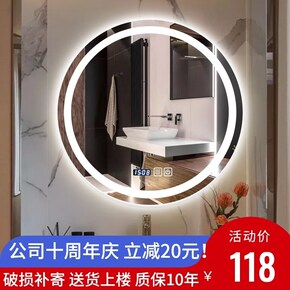 智能圆镜浴室镜led灯卫生间化妆壁挂卫浴镜带灯触摸...