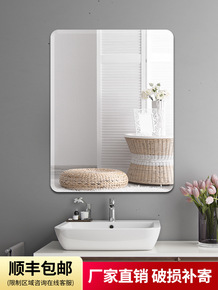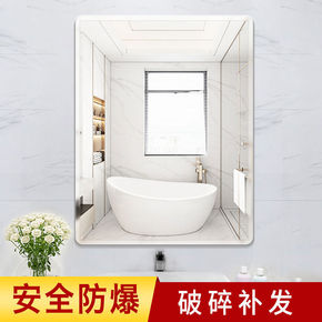 浴室镜子免打孔卫生间贴墙镜子粘贴卫浴厕所镜自粘洗手...