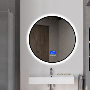 智能浴室镜铝合金有框圆形LED灯镜洗手间卫生间镜子...