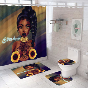 速卖通非洲女孩浴帘四件套向日葵数码印花马桶三件套厂...