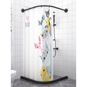 浴帘套装免打孔弧形U型l型加厚防水防霉浴帘布转角浴...