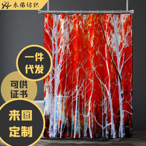 防水防霉加厚涤纶浴帘 数码印花浴帘浴室隔断挂帘浴帘...