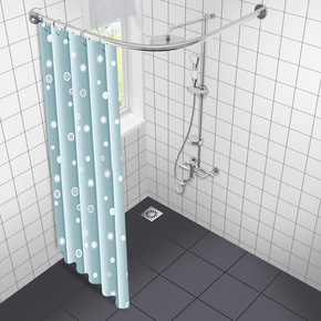 浴帘套装免打孔浴室防霉弧形杆淋浴L型洗澡卫生间防水...