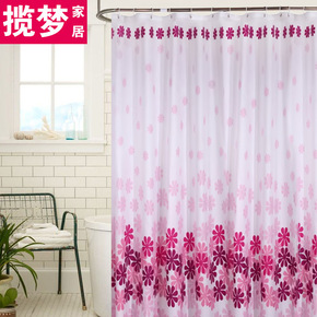 桃花朵朵加厚防水防霉加厚环保卫生间浴室隔断涤纶浴帘...