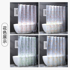 浴室浴帘套装免打孔花纹卫生间防水防霉加厚挂帘隔断帘...
