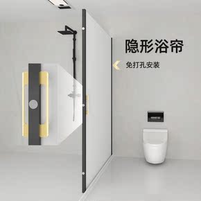 磁性浴帘套装免打孔浴室弧形挡水条干湿分离卫生间洗澡...
