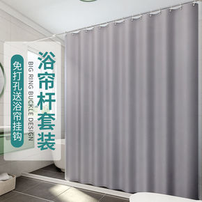 浴帘套装免打孔卫生间加厚浴帘布浴室浴帘隔断帘窗帘挂...