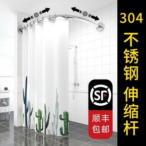 浴帘套装免打孔弧形浴帘杆L行拐角浴帘淋雨房304不...