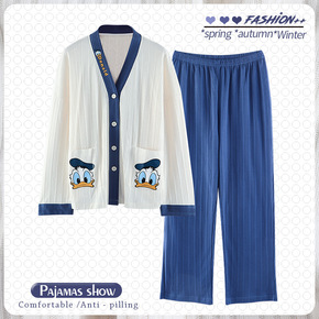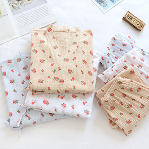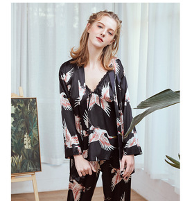 2021年春秋季睡衣女和服开衫长袖长裤套装宽松女士...
