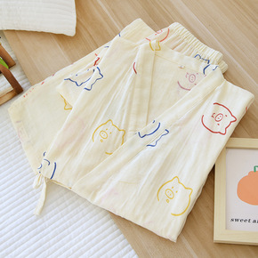 春季七分袖日系和服女士睡衣 三色系带休闲户外家居服...