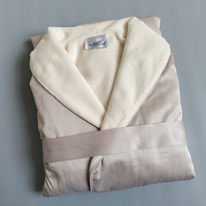 希尔顿秋冬超细纤维双层浴袍男女加绒保暖睡袍情侣五星...
