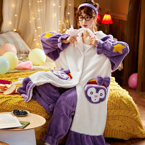 天马家居服可爱独角兽猫动物卡通造型连体睡衣秋冬男女...