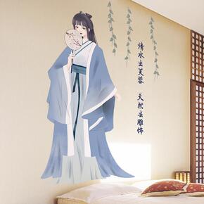 古风美女墙贴画中国风房间装饰贴纸古典人物海报贴画墙...