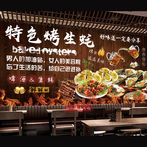 烧烤店装饰画餐馆海报饭店餐厅壁画烤鱼店撸串烤串背景...