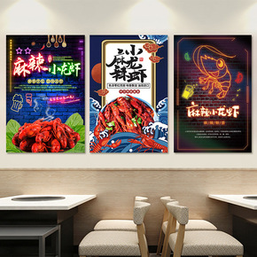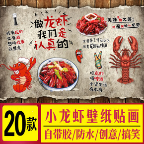 小龙虾广告海报贴纸自粘贴画图案店铺装饰饭店装饰墙纸...