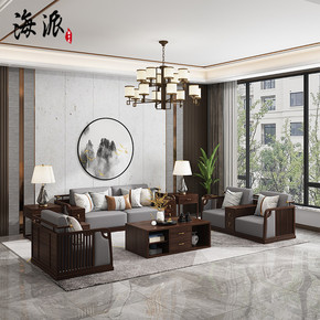 新中式乌金木沙发简约现代禅意别墅会所大小户型客厅实...