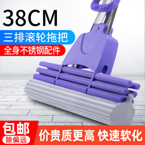 拖把胶棉耐用38cm不锈钢三排滚轮懒人吸水免手洗家...
