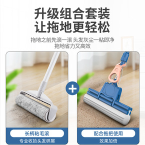 胶棉拖把卫生间清洁免手洗家用拖把可伸缩吸水海绵替换...
