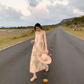 法式小众吊带连衣裙夏季长款气质三亚旅行穿搭海边度假...