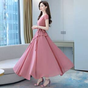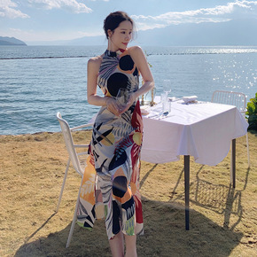 海边度假沙滩裙海南三亚旅拍雪纺露背连衣裙拖尾大摆长...