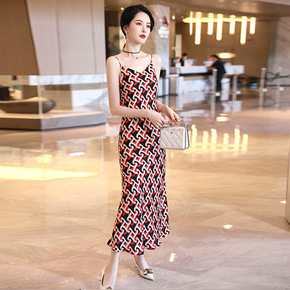 新款女度假裙海边沙滩裙缎面性感露背吊带裙长款长裙...