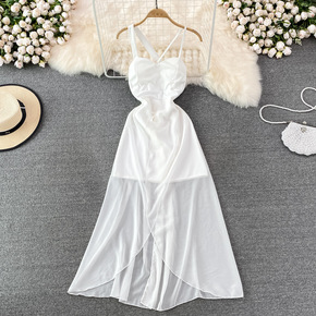 法式海边度假抹胸吊带连衣裙长款设计高级感小众超仙露...