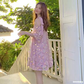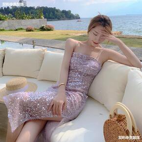 2021夏季新款气质收腰羽毛流苏仙女裙小清新海边度...