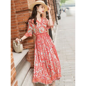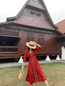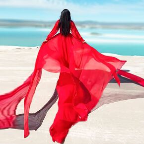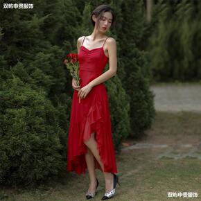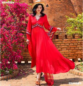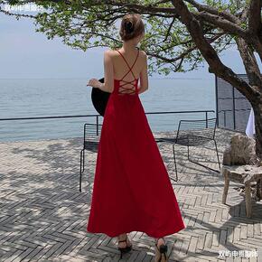 超仙女沙滩裙海边度假裙沙漠三亚旅游衣服拍照大红色拖...