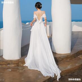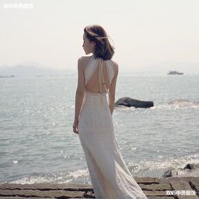 海边度假连衣裙三亚旅游衣服白色雪纺露背超仙沙滩裙大...