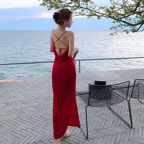 2021新款海边度假沙滩性感露背连衣裙长款仙女裙超...