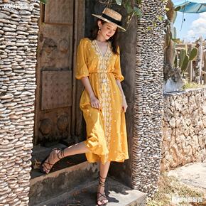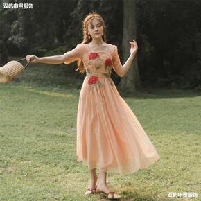 新款复古镂空蕾丝刺绣连衣裙波西米亚海边度假沙滩仙女...