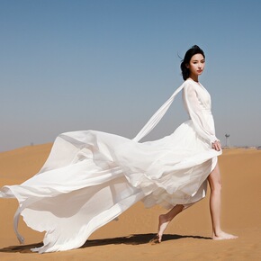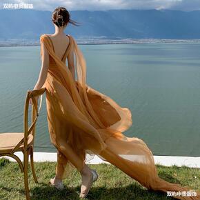 三亚旅游衣服沙滩裙超仙女海边度假裙沙漠拍照大摆雪纺...