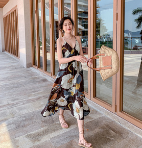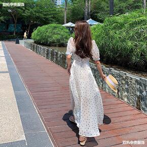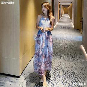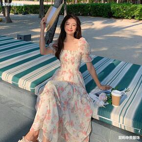 沙滩裙海边度假超仙2021年夏季新款碎花雪纺连衣裙...