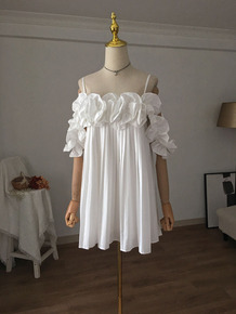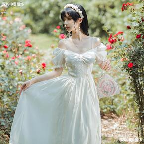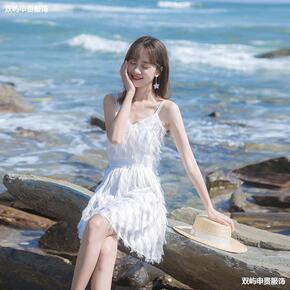 沙滩裙三亚旅行穿搭海边度假露肩白色吊带连衣裙仙女短...