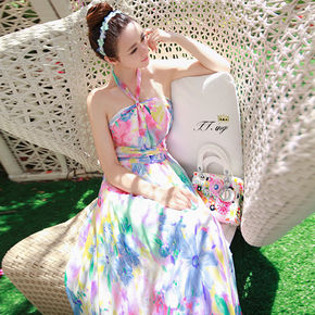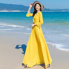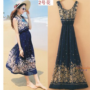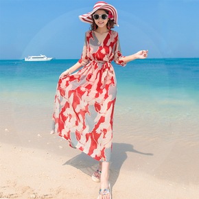 泰国三亚海边度假沙滩裙女夏波西米亚长裙雪纺碎花显瘦...