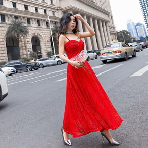 海南三亚旅游茶卡盐湖红色沙滩裙女海边度假沙漠显瘦连...