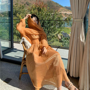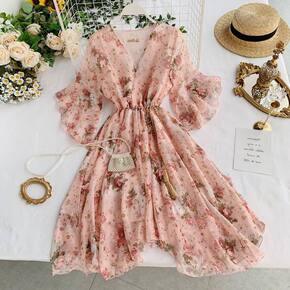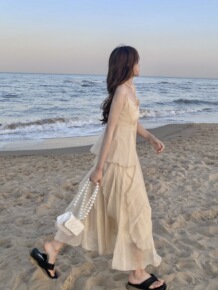 康康 海边度假bi备的仙女裙2021夏季新款雪纺吊...