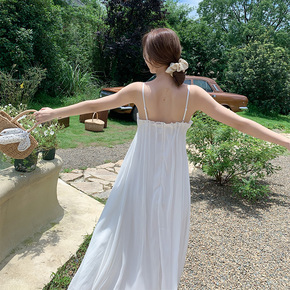 白色吊带沙滩裙连衣裙夏女海边度假束腰小裙子超仙初恋...