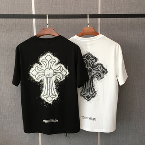 2022早春夏季新品欧美潮牌克罗十字架梵文马蹄短袖...