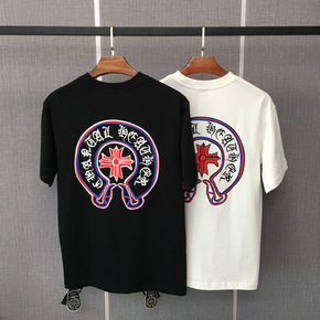 CH早春新款潮牌梵文彩色印花马蹄十字架百搭情侣时尚...